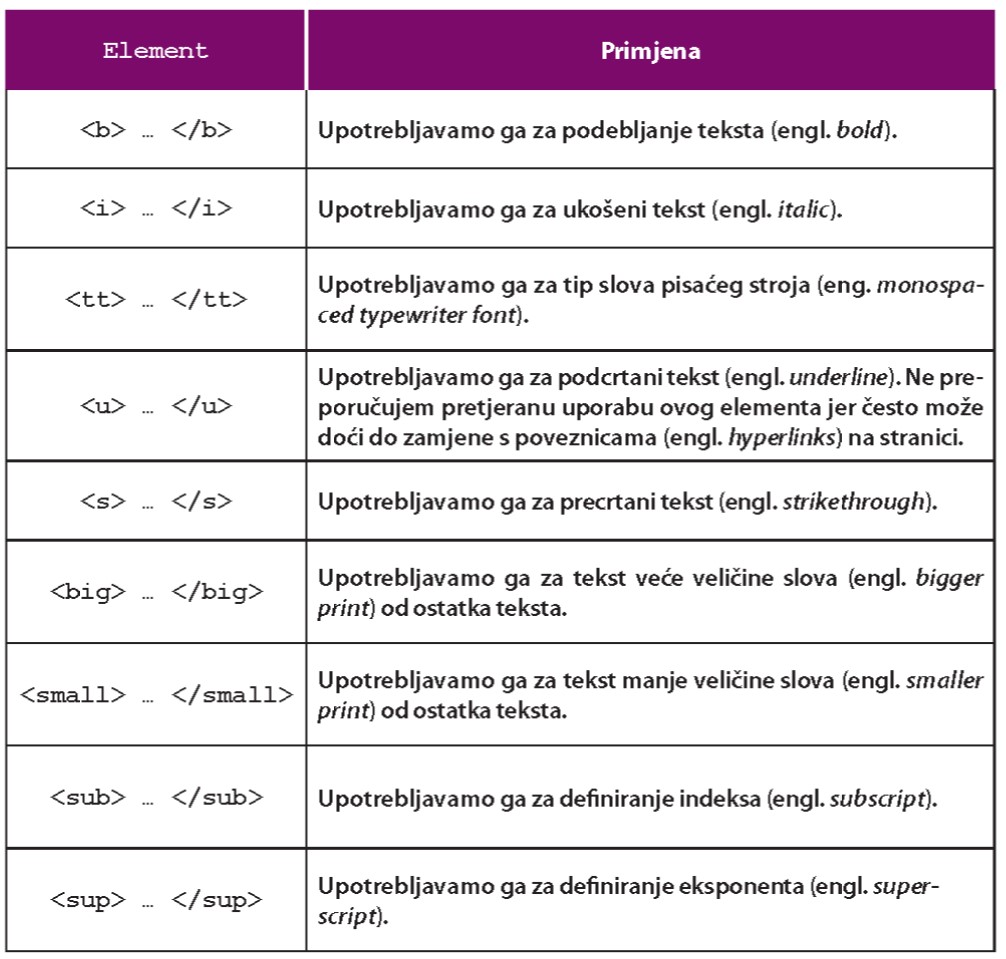 < h1> - naslov prve razine, < h2> - naslov druge razine, < h3> - naslov treće razine ...
